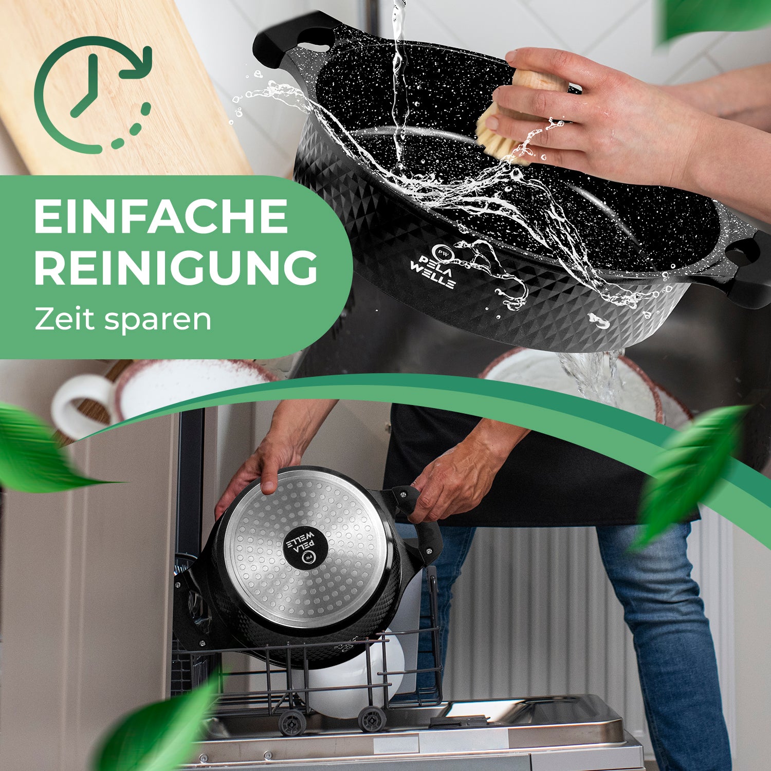 Pela Welle® Topfset Induktion [15-teilig Keramik] inkl. Küchenhelfer, schwarz